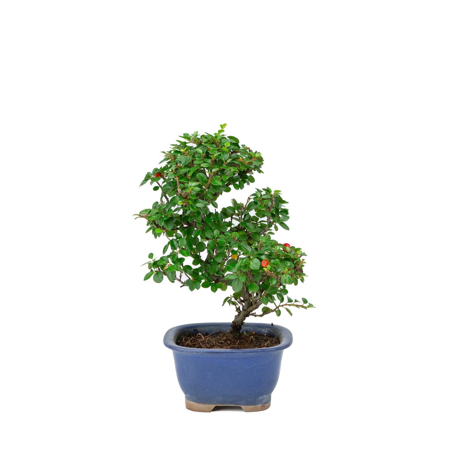 Shohin Bonsai Cotoneaster blauwe rechthoekige pot met afgeronde hoeken 12cm, hoogte ~26cm