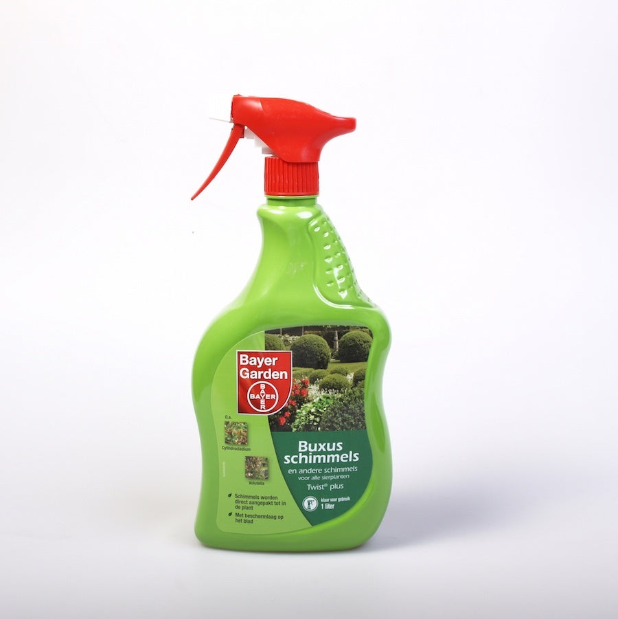 Spray anti-moisissures Bayer Garden Curalia (Twist) de 1000 ml, efficace contre les moisissures, notamment le Cylindrocladium et le Volutella. Ce produit polyvalent à usage général contient deux principes actifs et combat un large éventail de moisissures courantes telles que l'oïdium, la moisissure blanche, la tache noire, le Cylindrocladium et le Volutella. Prêt à l'emploi, il est conditionné dans un flacon pulvérisateur de 1000 ml.
