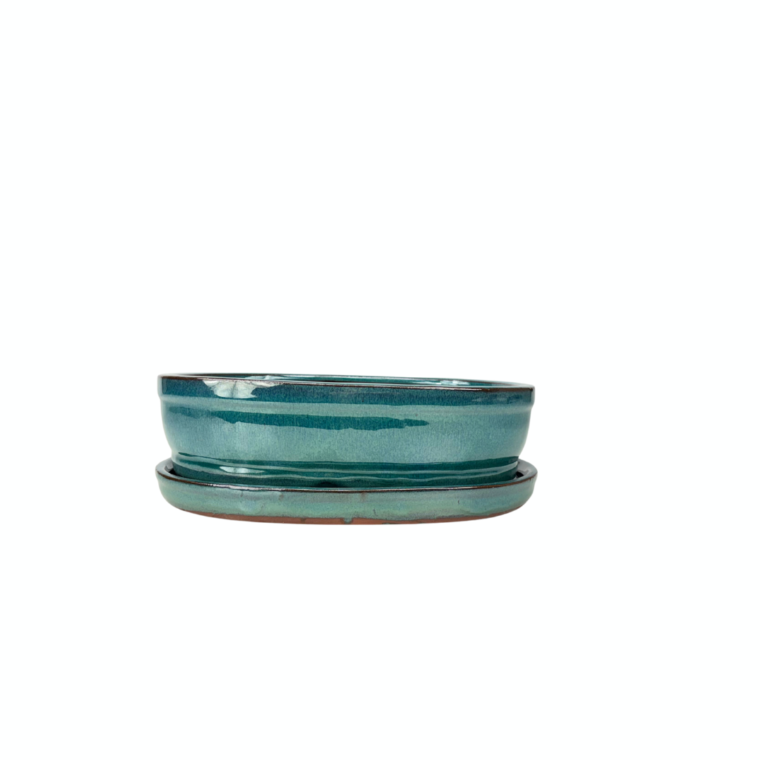 Bonsai pot groen ovaal 16cm - set