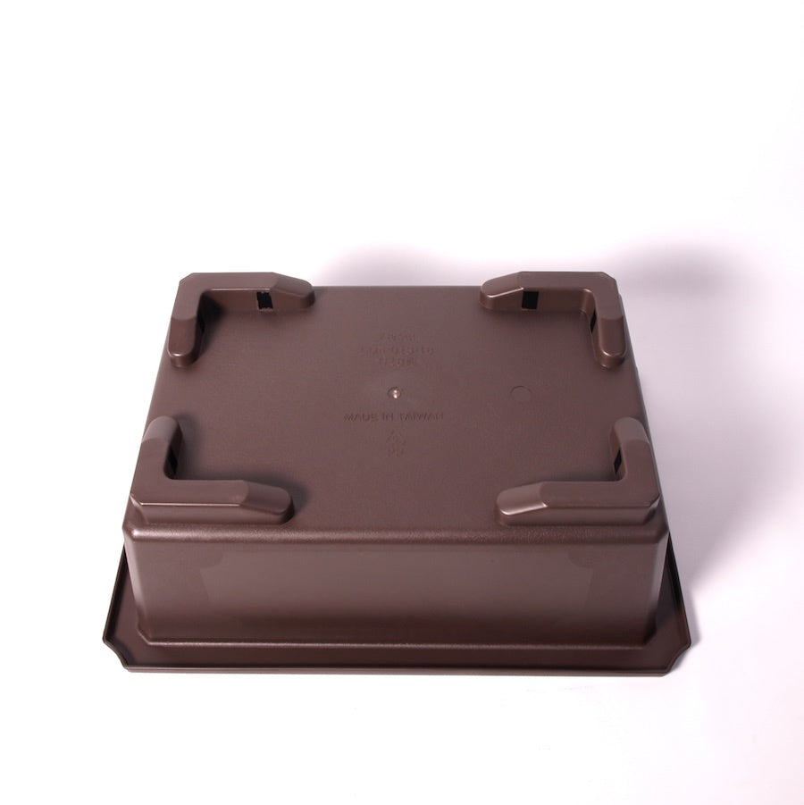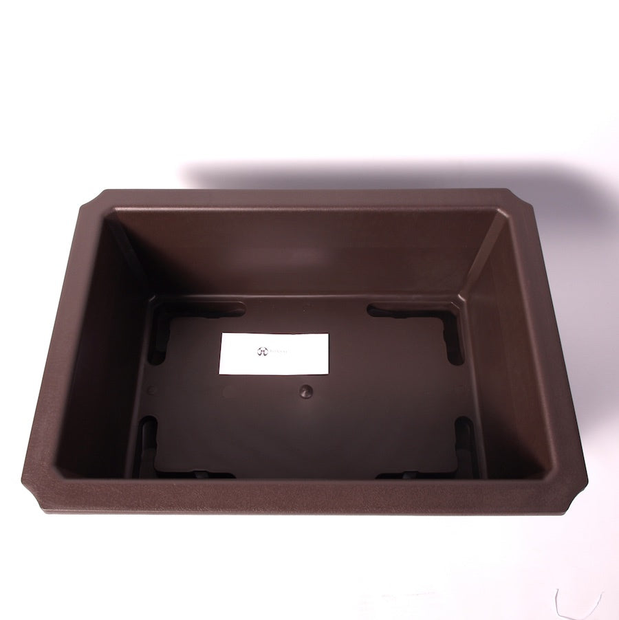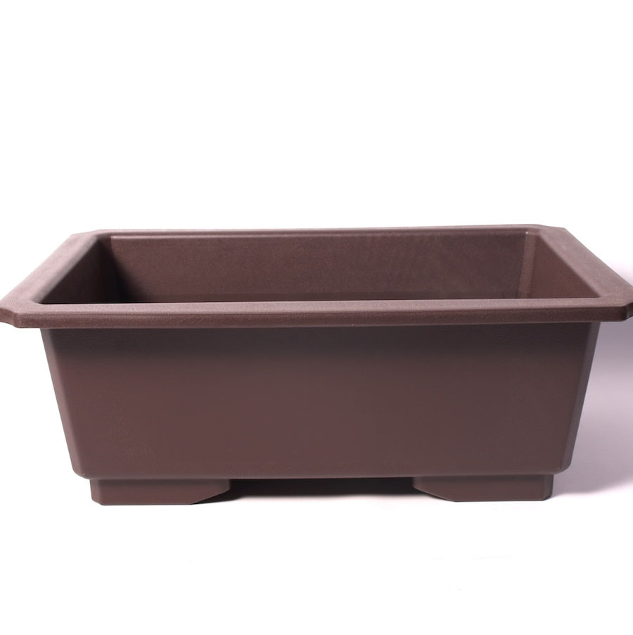 Pot de formation rectangulaire en plastique marron, dimensions : 21 cm x 57 cm x 41 cm. Les dimensions indiquées correspondent aux dimensions extérieures du pot (H x L x P). Très résistant aux UV. Les bols de formation sont idéaux pour développer et faire grandir votre bonsaï. Ils ont la forme et l’apparence d’un pot à bonsaï, mais sont plus légers, plus résistants et plus abordables que de nombreux pots en céramique. On choisit souvent une capacité légèrement supérieure à celle du pot final afin de favoriser une croissance plus rapide des branches et des ramifications grâce à un volume racinaire plus important.
