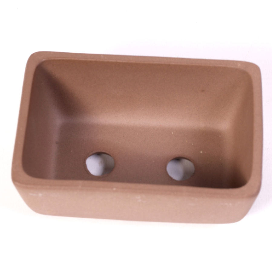 Pot rectangulaire brun pour bonsaï, non émaillé. Dimensions : 12 cm de long, 8,5 cm de large, 5 cm de profondeur.