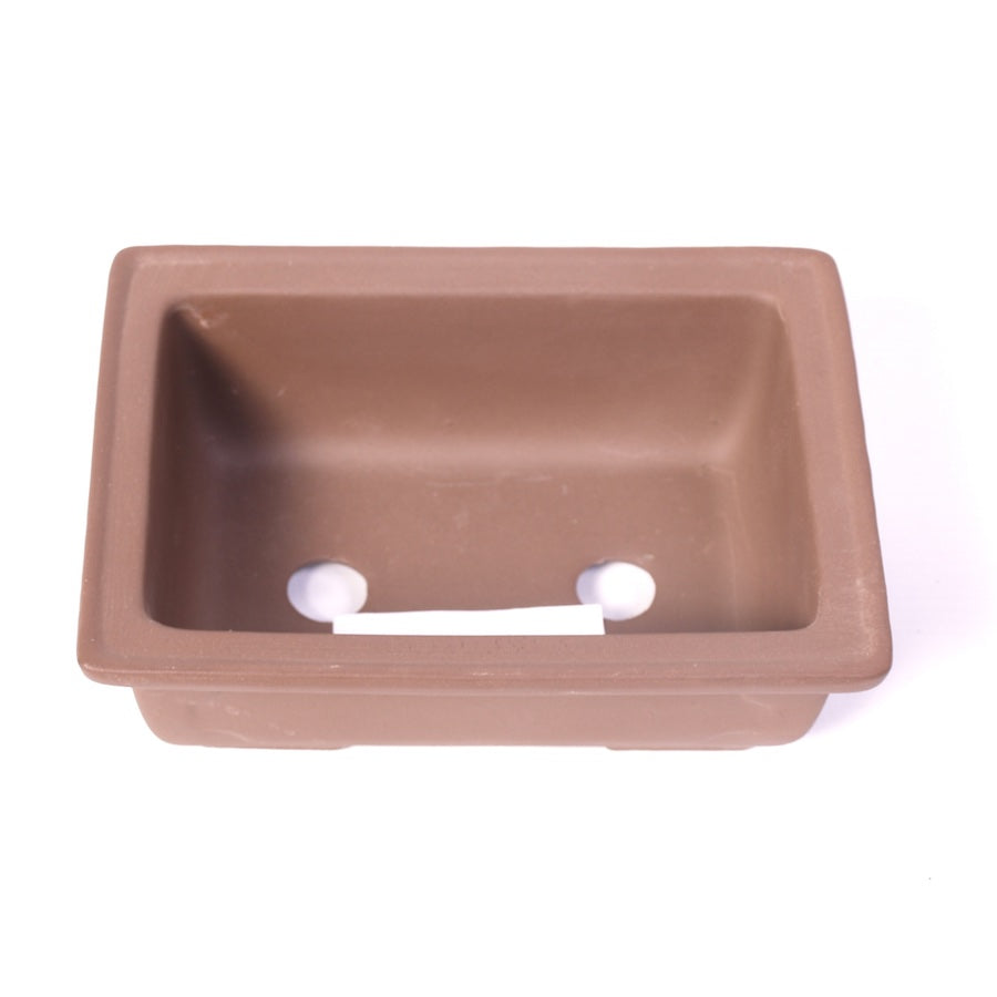 Pot de bonsaï rectangulaire brun, non émaillé, dimensions : 6 cm x 16,5 cm x 12 cm. Les dimensions indiquées sont les dimensions extérieures (hauteur x largeur x profondeur).
